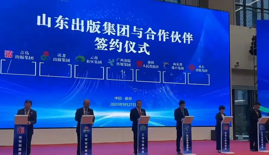 仪式上,山东出版集团董事长张志华介绍有关情况,省委外办副主任陈白薇、广西出版传媒集团董事长覃超、沙特阿拉伯王国驻华大使馆文化参赞阿蒙博士、北京罗马尼亚文化中心主任利维乌·策兰努先后致辞。阿蒙博士与省文化和旅游厅厅长王磊共同为“国际汉语教育培训基地”揭牌。山东出版集团与有关单位签约。