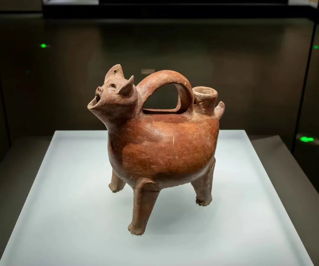 这只红陶兽形壶出土于1959年,憨态可掬,用现在的话就是“萌萌哒”。