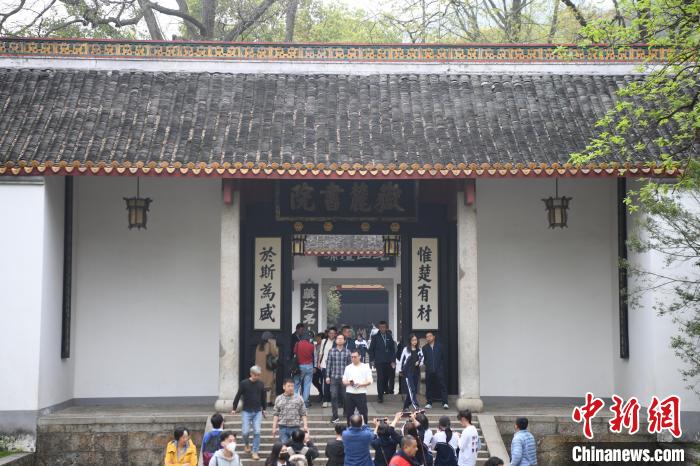 岳麓书院大门有一副集句联,上联是“惟楚有材”,源自《左传》;下联是“于斯为盛”,出自《论语》。 中新社记者 杨华峰 摄