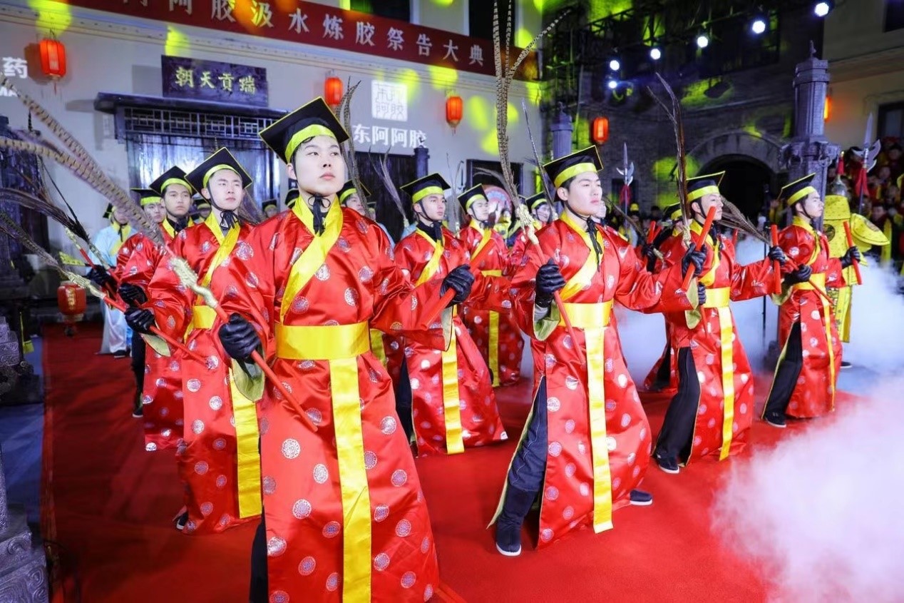 近年来,东阿阿胶持续挖掘、保护传统炼胶仪式,每年冬至在东阿阿胶城举办汲水炼胶祭告大典,弘扬传播中医药文化,传承守护阿胶文化,唤醒广大民众对中医药文化的历史记忆。