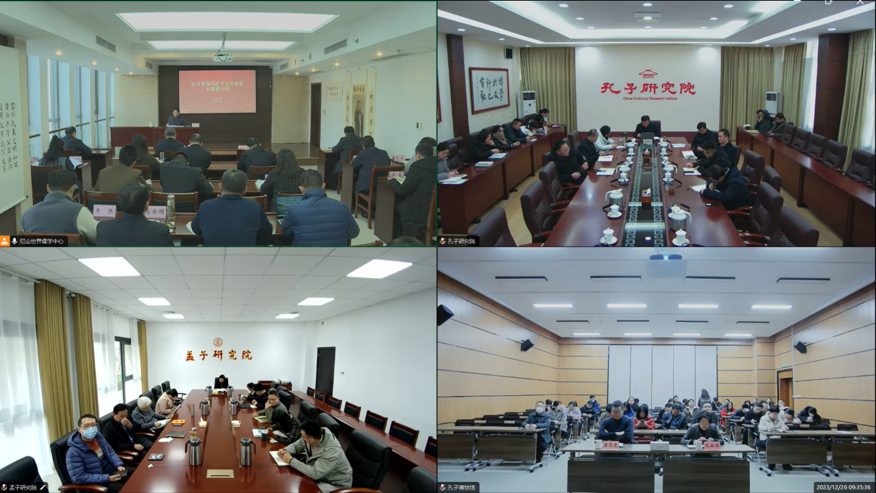 为深入学习贯彻习近平文化思想,贯彻落实全国、全省宣传思想文化工作会议精神,12月26日-27日,尼山世界儒学中心(中国孔子基金会秘书处)以线上线下形式举办学习贯彻习近平文化思想专题研讨班。尼山世界儒学中心(中国孔子基金会秘书处)党委书记、副主任国承彦作开班动员讲话。儒学中心(基金会秘书处)领导班子成员,中心机关县处级以上干部、副高级以上职称人员,孔子研究院、孔子博物馆、孟子研究院中层以上干部、副高级以上职称人员参加学习班。