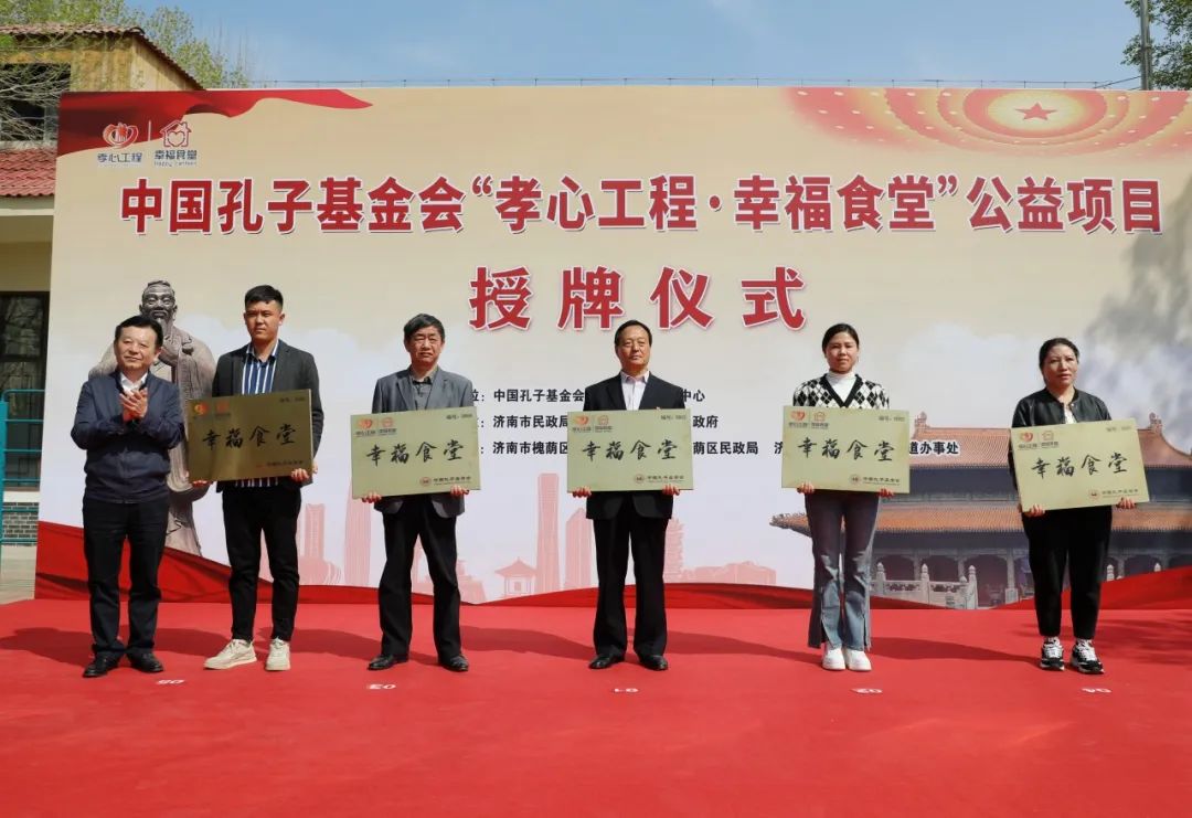 3月31日,中国孔子基金会“孝心工程·幸福食堂”公益项目落户济南槐荫区新庞村、范庄村等5座村庄。山东省人大常委会原党组书记、副主任,中国孔子基金会理事长于晓明为幸福食堂授牌,项目既是为了解决老年人的就餐问题,更是为邻里搭建守望相助的平台,让更多老年人过上老有所养、老有所依、老有所乐、老有所安的幸福生活。