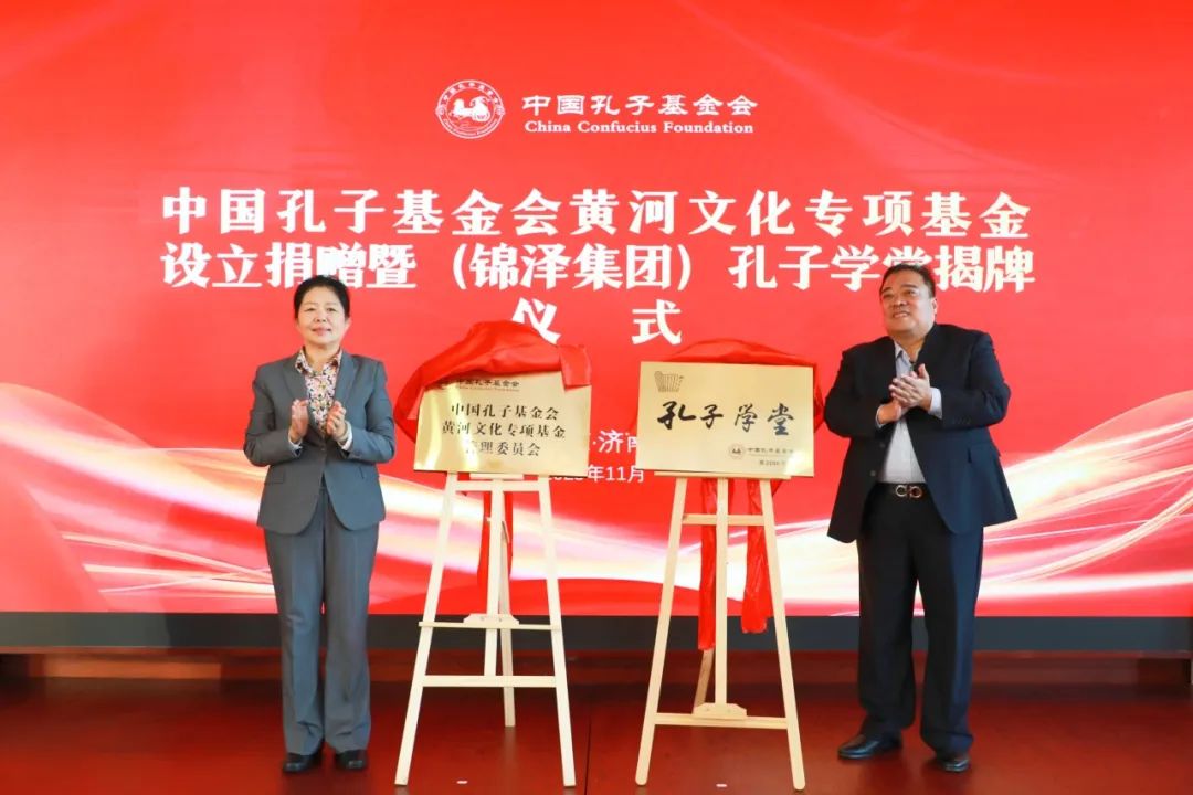 11月16日,中国孔子基金会黄河文化专项基金设立捐赠暨锦泽集团孔子学堂揭牌仪式在山东锦泽实业集团有限公司举行。尼山世界儒学中心、中国孔子基金会秘书处与锦泽实业集团将共同担负起弘扬黄河文化、讲好黄河故事的时代使命,为建设中华民族共有的精神家园,提升国家文化软实力贡献力量。