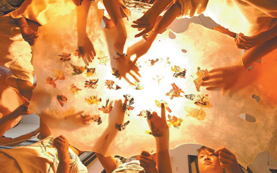 走到幕布后,只见两双手举着人物皮影,迅速、连贯地变换动作,配合默契——国家级非遗项目孝义皮影戏传承人侯建川和搭档正在表演。“现在我们有了更多展示皮影艺术的舞台,我也带出了很多徒弟,让这项传统技艺能更好传承下去。”侯建川感叹。