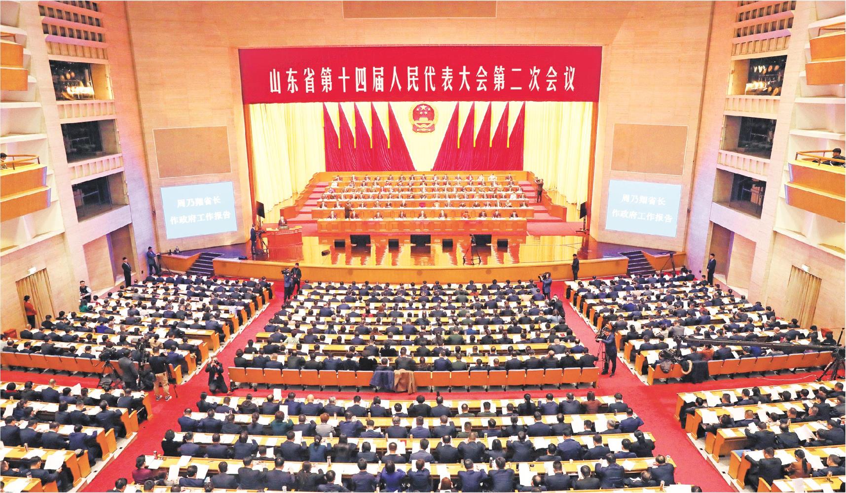 1月22日,山东省第十四届人民代表大会第二次会议在山东会堂开幕。 记者卢鹏报道