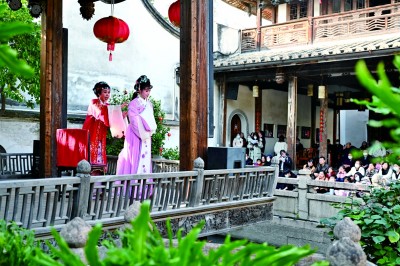 游客在福州三坊七巷水榭戏台观看越剧。新华社发