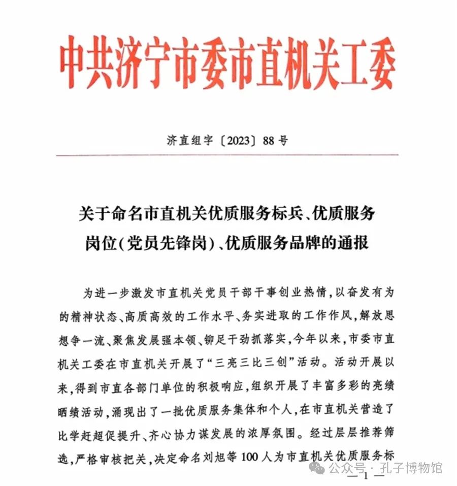 喜报!孔子博物馆“子约”志愿服务品牌荣获济宁“市直机关优质服务品牌”称号