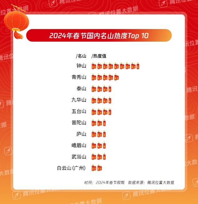 除了天下第一泉,泰山也有极高的热度。在全国热门的名山大川中,泰山的旅游热度位列第三,仅次于钟山和青秀山。值得注意的是,春节期间,泰山还曾因为大暴雪的缘故,发布过暂停开放的紧急通告。