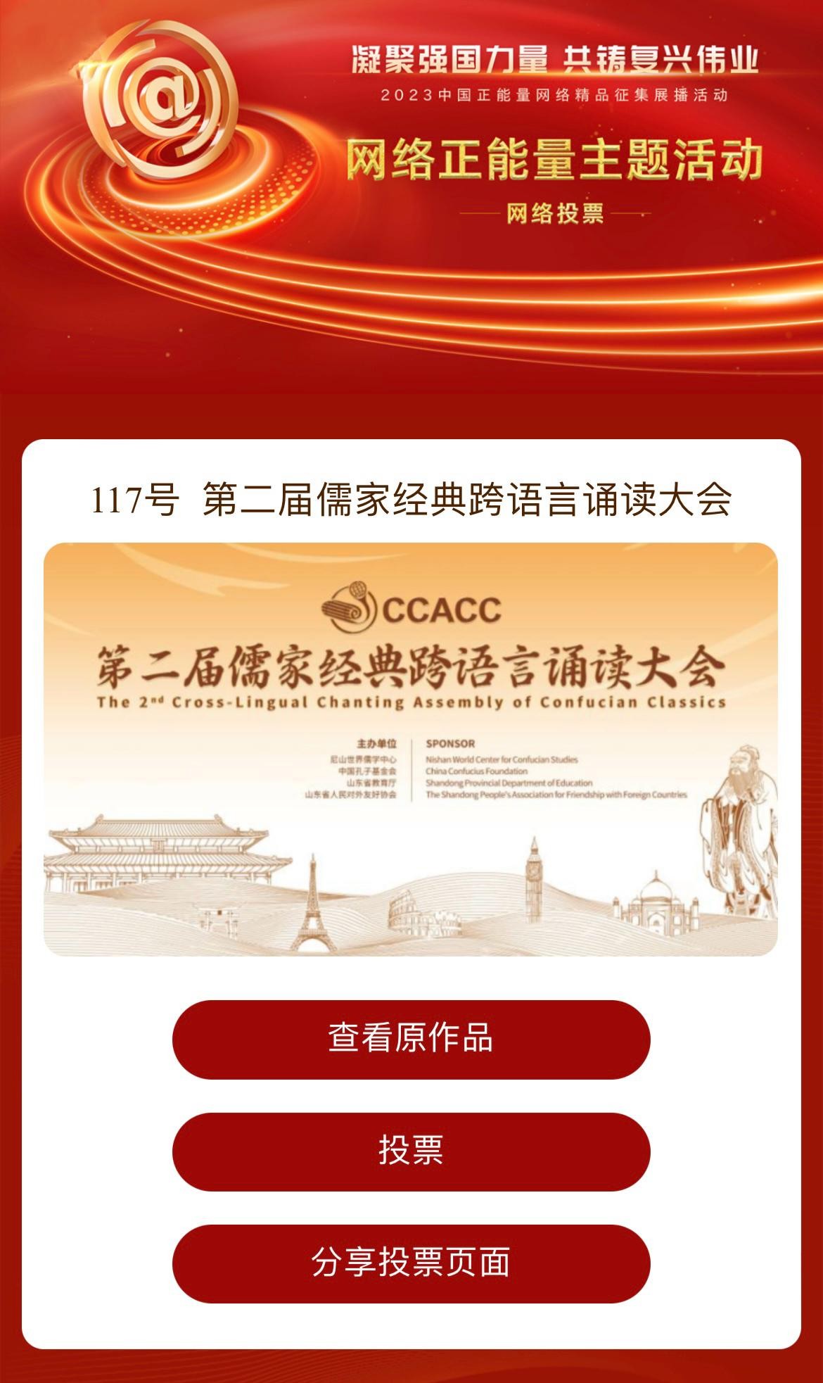 一起为第二届儒家经典跨语言诵读大会助力加油!