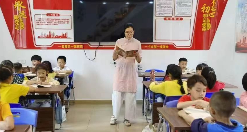 何雪姬在为社区的孩子们进行公益授课