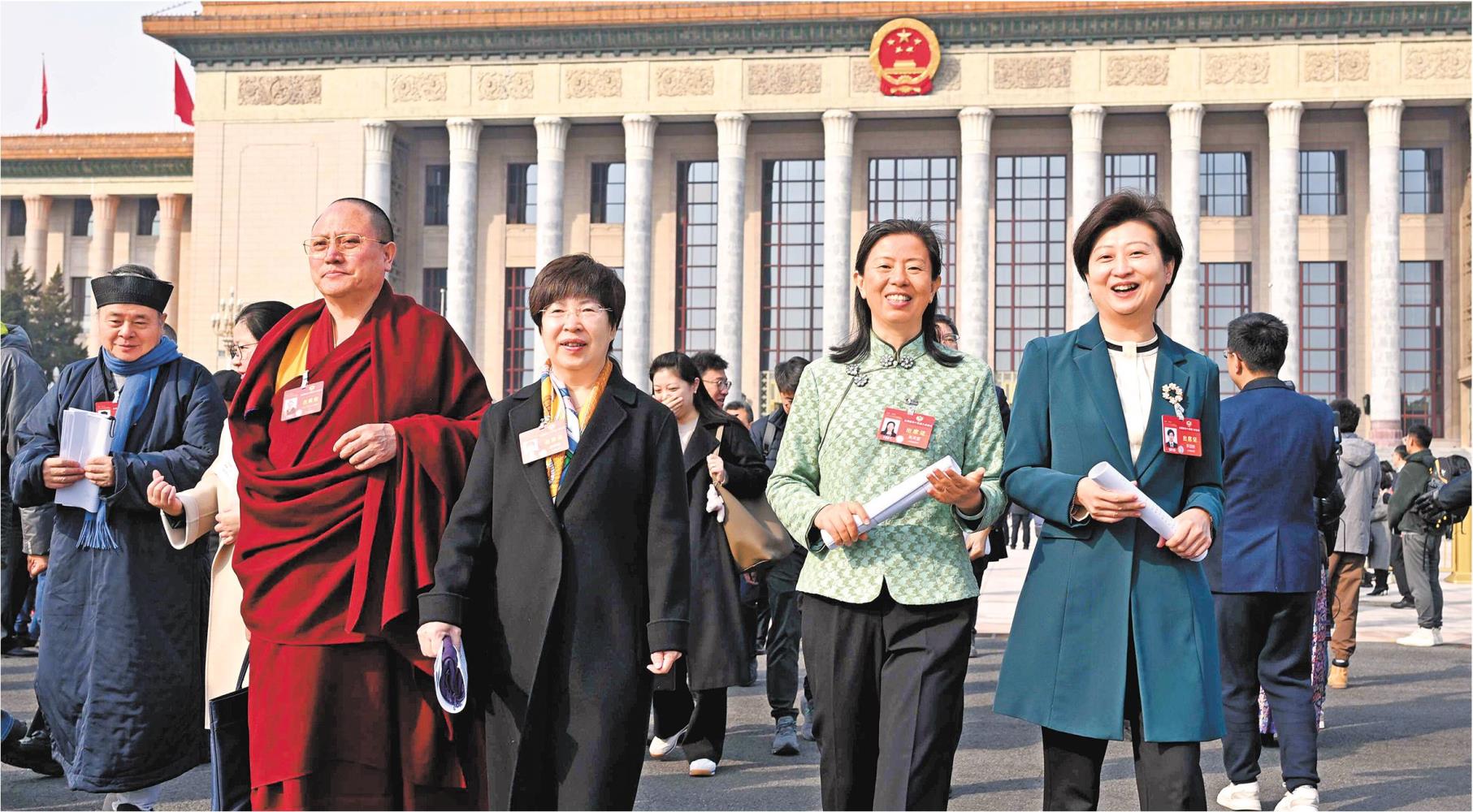 新华社记者李鑫报道 3月10日,中国人民政治协商会议第十四届全国委员会第二次会议在北京人民大会堂举行闭幕会。这是闭幕会后,委员们走出人民大会堂。