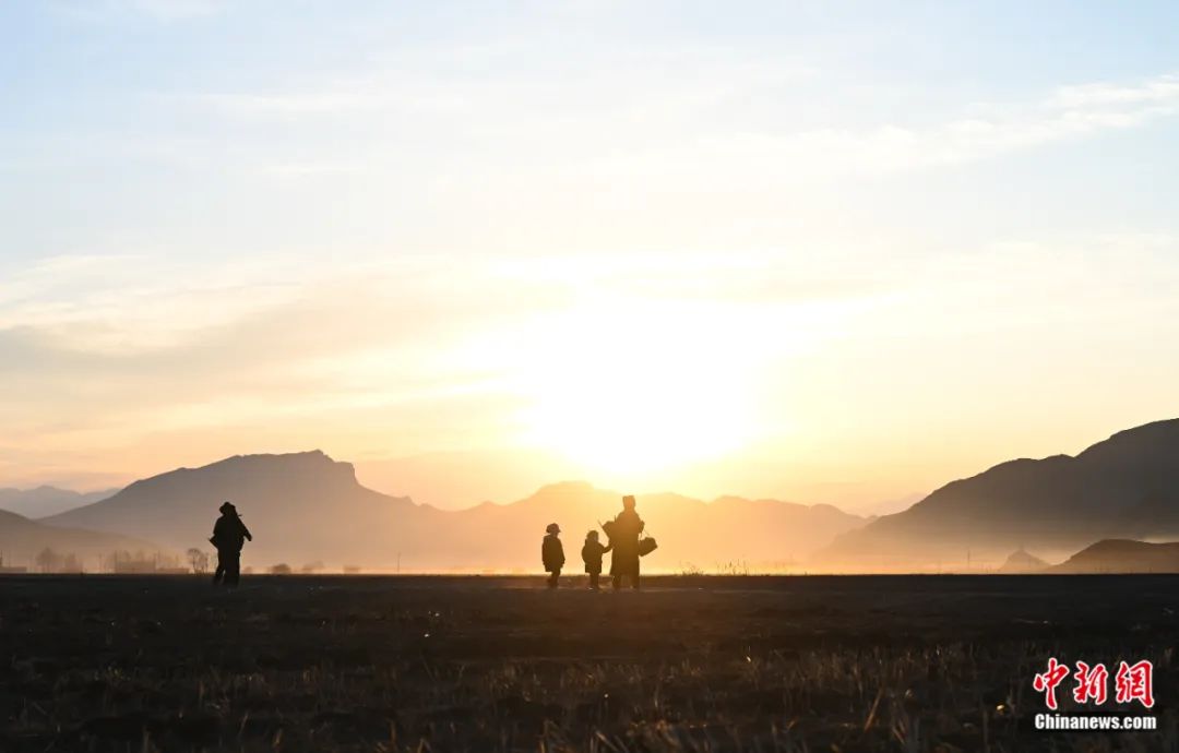 2024年3月16日是藏历二月初七,西藏拉萨、山南等地开启春耕春播。图为拉萨市林周县春堆村的村民们早上赶往田间参加春耕。赵朗 摄