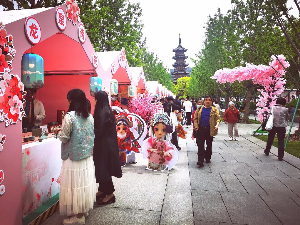 “我小时候的庙会,人们前来交换生产工具和生活必需品;如今市集里文创产品琳琅满目,广场上演出精彩,内容丰富多了。”70岁的上海市民周先生回忆。他带着2岁的小孙子前来,看着中学生舞动色彩明艳的“桃花龙”,周先生期待孩子们把传统进一步发扬光大。