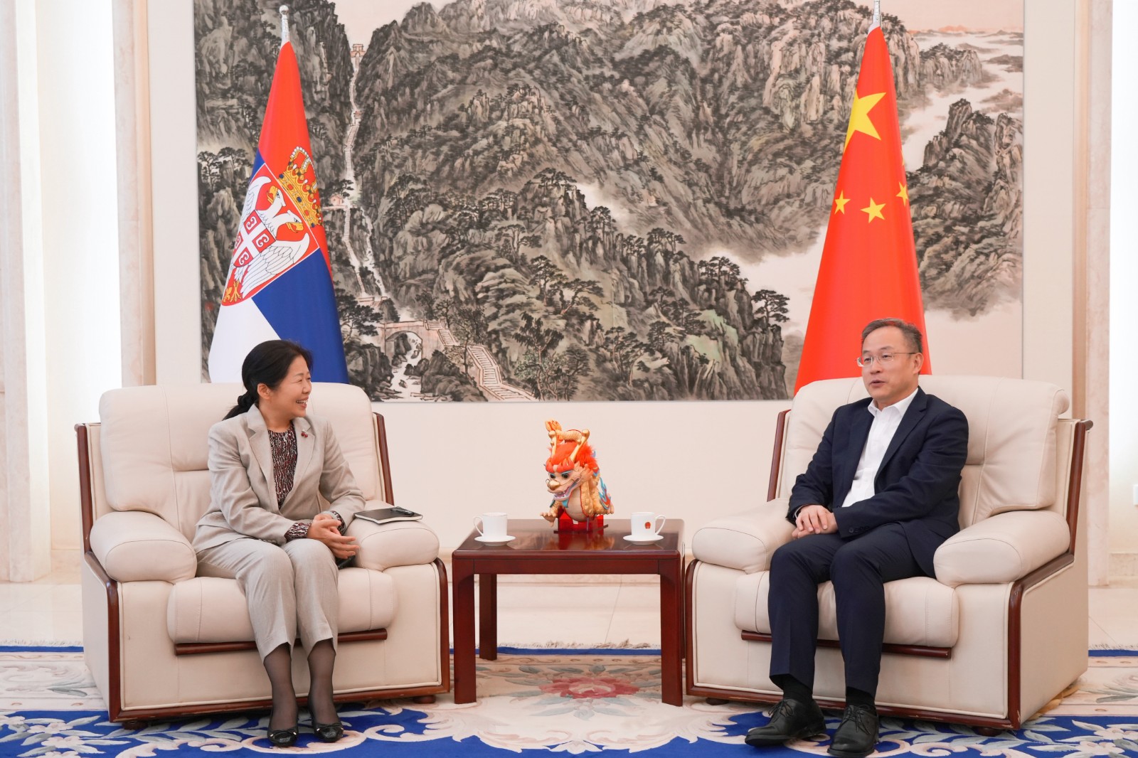 中国驻塞尔维亚大使李明会见国承彦一行