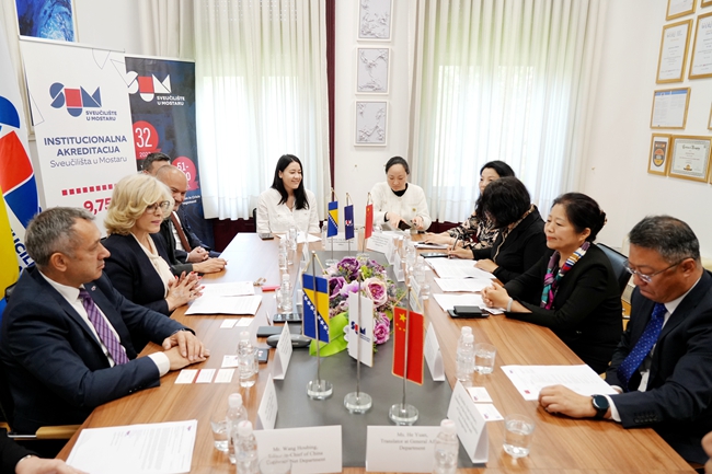 国承彦介绍了尼山世界儒学中心(中国孔子基金会秘书处)近年来发展整体情况,并感谢中国驻波黑使馆对海外文化交流的支持。她表示,要以尼山世界儒学中心莫斯塔尔大学分中心挂牌为契机,积极推动与波黑教育机构的合作,助力中波汉学学术研究和交流;要在中国驻波黑使馆的支持下,充分发挥平台优势和学术优势,利用好海外分中心,在汉学家来华驻研、科研成果转化、课程开发、师资共享等方面开展务实合作,以项目落地带动海外分中心高水平发展;要探索建立常态化合作机制,发挥好文化公益基金作用,推动合作项目逐一落实;要研发双语普及读物,联合开展线上教学、组织参与双语诵读等活动,以文化交流推动民心相通。