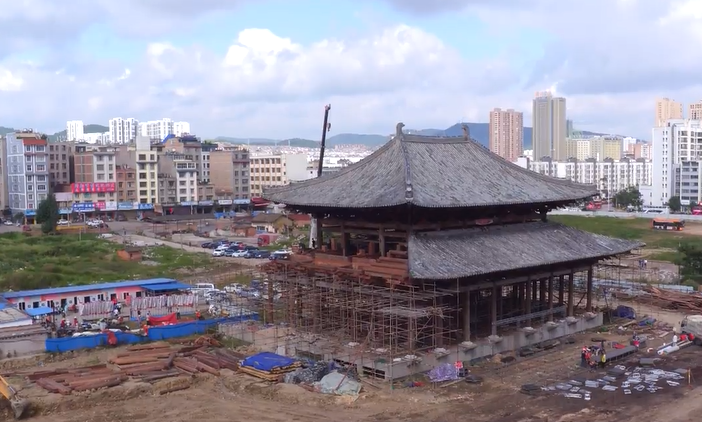 2017年建设中的曲靖文庙,图中左侧的活动板房为曲靖文庙孔子学堂所在地