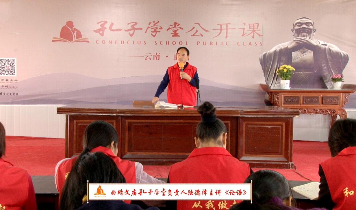曲靖文庙孔子学堂不仅吸引了数以万计的学员走进这间活动板房学习交流,还积极组织宣讲团走进机关、学校、社区、村庄开展专题讲座。陆德泽说:“十余载光阴,我舍弃了周末与节假日的休憩时光,克服重重困难,风雨无阻地为全市乃至全省、全国各行各业的志士仁人传播传统文化。他们的肯定和认可,像一声声号角,激励着我不断前行。”
