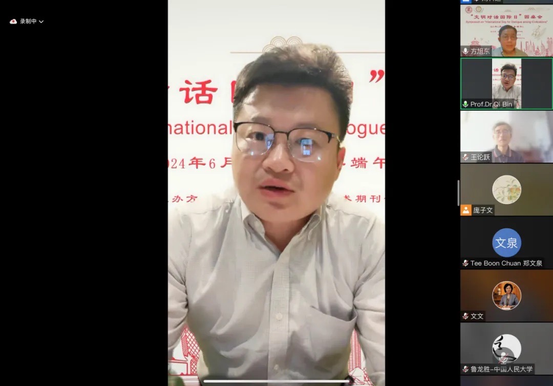6月10日,“文明对话国际日”圆桌会在线上成功举办。圆桌会由尼山世界儒学中心(中国孔子基金会秘书处)学术期刊部、国际儒学联合会学术委员会、华东师范大学文明互鉴研究中心共同主办。来自法国国立东方语言文化学院(INALCO)、文莱大学亚洲研究所、新加坡国立大学、泰国格乐大学 、北京中国学中心(The Bejing Center)、纽约州立大学、印尼和谐文化基金会、意大利帕多瓦大学、中国人民大学、华东师范大学、清华大学、山东大学、四川大学等四十余所高校和科研院所的六十余位专家学者和硕博研究生就世界文明对话相关问题展开了热烈讨论。