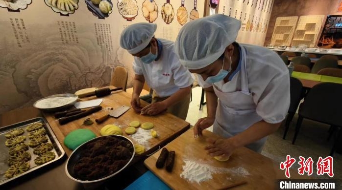 隆盛糕点技艺传习所工作人员正展示制作技法。周艺伟 摄