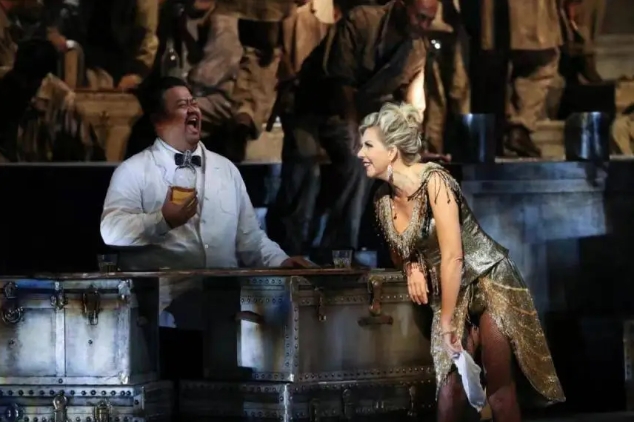 颇有年代感的大皮箱摆了满地,台球桌横陈潦草,酒杯满天乱飞,酒馆老板、矿工、盗匪粉墨登场,一派粗粝的莽荒气质扑面而来,如同一部酣畅淋漓的西部大片。7月21日,国家大剧院制作的普契尼歌剧《西部女郎》正在紧张彩排,7月23日至27日,著名指挥家卡罗·利兹将执棒国家大剧院管弦乐团,携手中、美、意三国艺术家组成的创演阵容,把这部描写加利福尼亚淘金热的歌剧带上2024国家大剧院歌剧节的舞台。