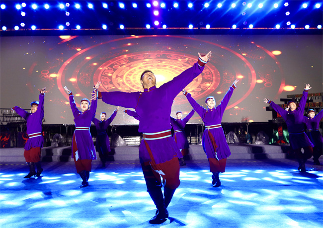 杭锦旗乌兰牧骑表演群舞《蒙古马》。