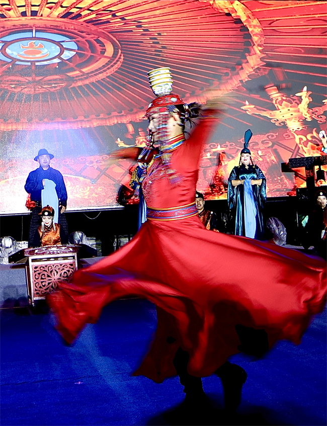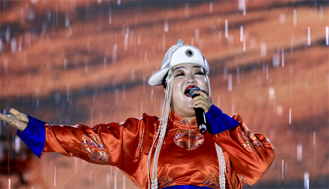 杭锦旗乌兰牧骑表演歌舞乐《草原的祝福》。