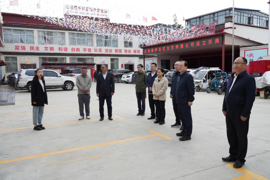 揭牌仪式前,米怀勇一行到日喀则市江洛康萨社区孔子学堂调研,听取了社区负责人关于“文化交流促融合”工作情况介绍。