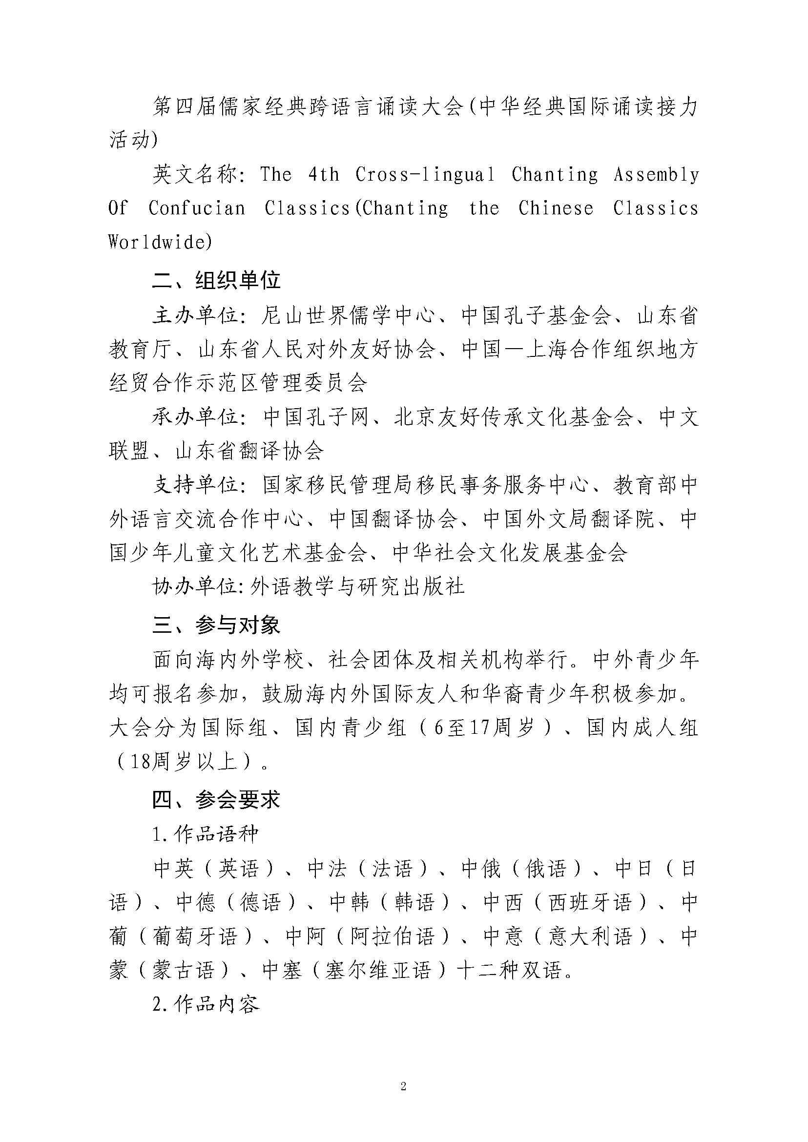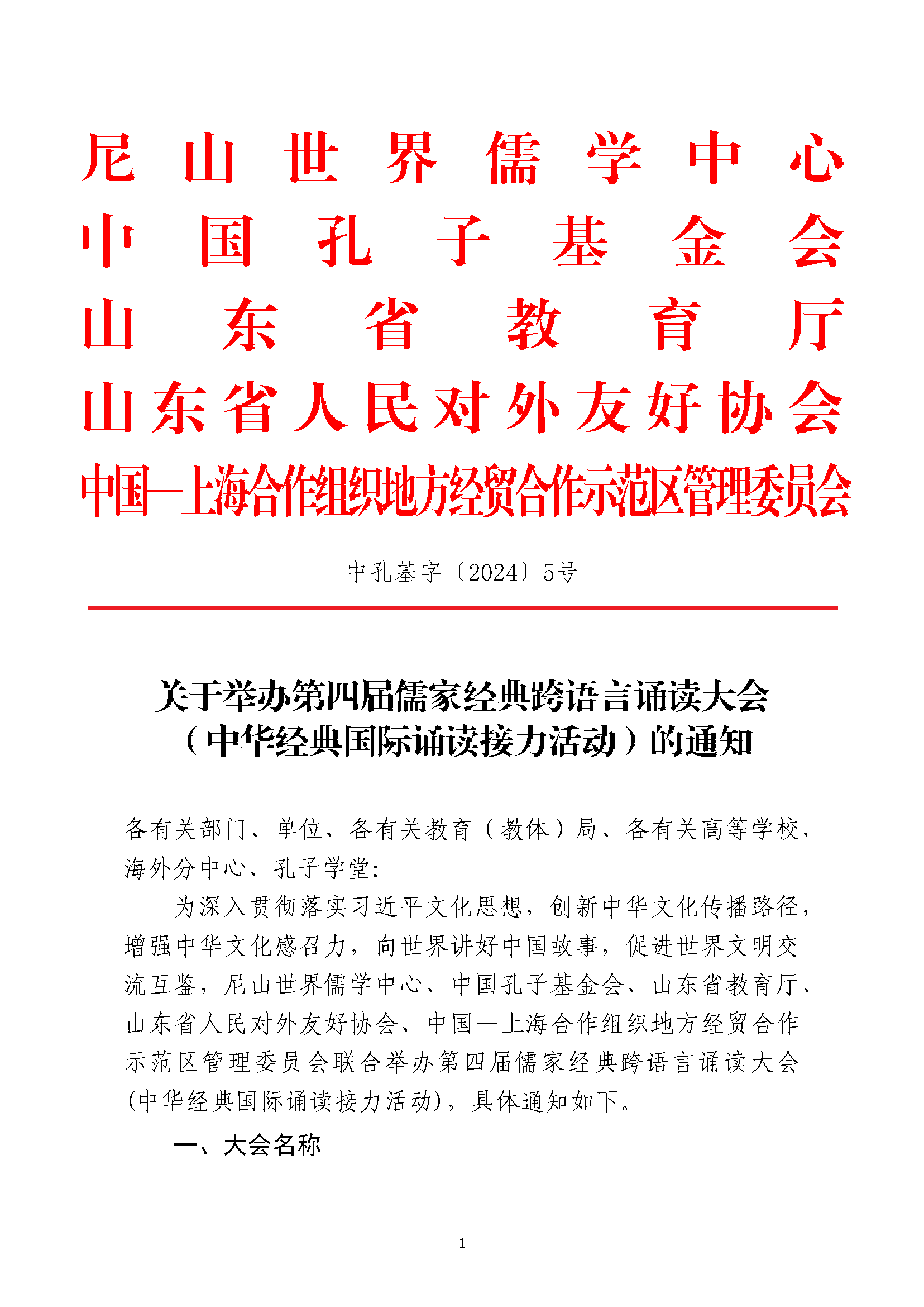 关于举办第四届儒家经典跨语言诵读大会(中华经典国际诵读接力活动)的通知