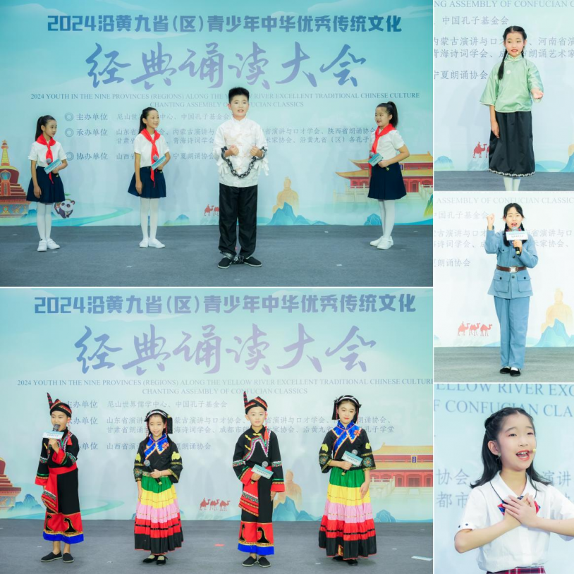 2024沿黄九省(区)青少年中华优秀传统文化经典诵读大会由尼山世界儒学中心和中国孔子基金会主办,山东省演讲学会、内蒙古演讲与口才协会、河南省演讲与口才学会、陕西省朗诵协会、甘肃省朗诵协会、青海诗词学会、成都市朗诵艺术家协会承办,山西省演讲学会、宁夏朗诵协会协办。