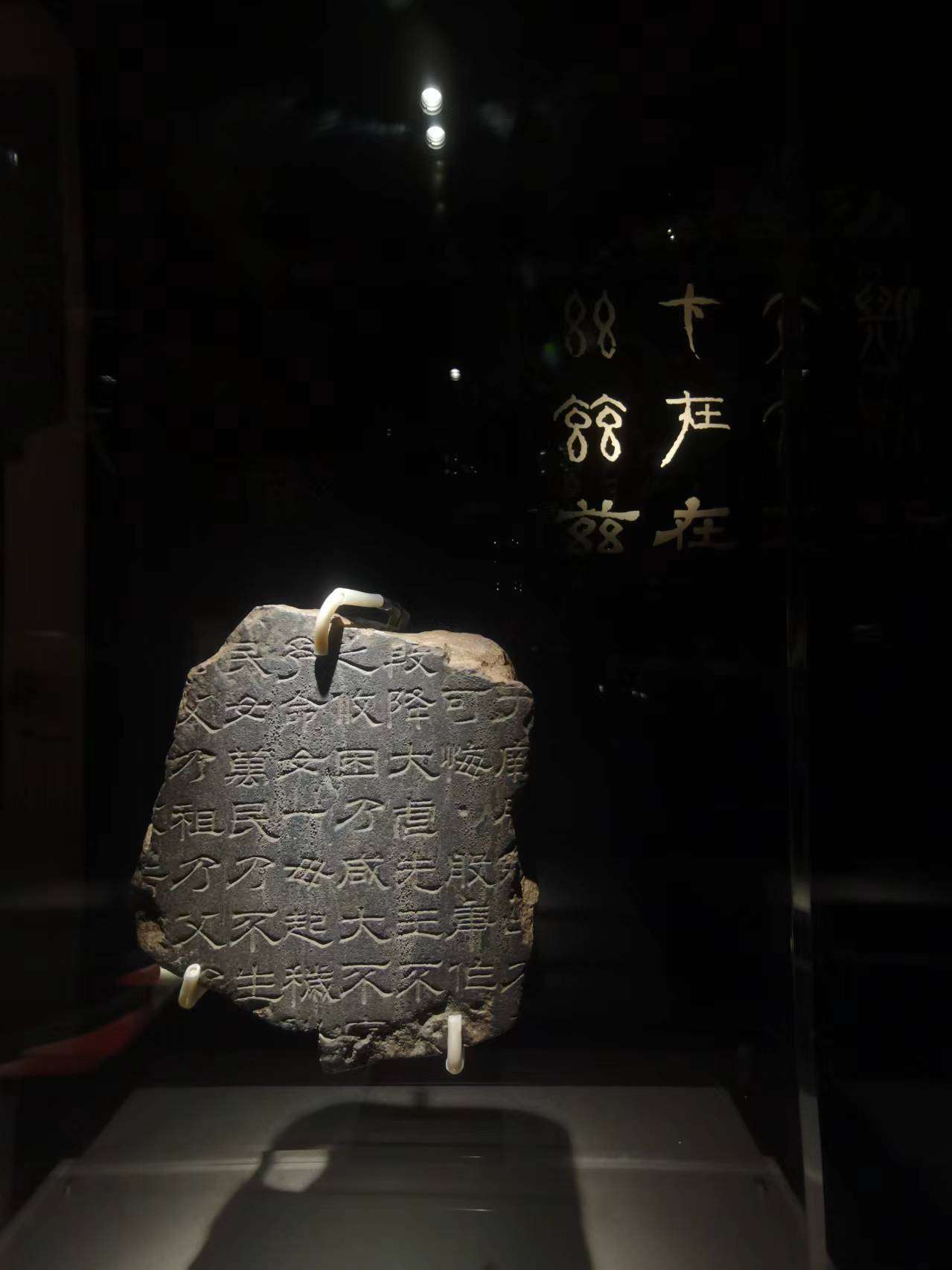 展出中的东汉熹平石经、三国正始石经等系官方校定的儒家经典定本,石经虽残破不堪但儒家思想却在千年传承中始终保持着旺盛的生命力;值得一提的是,其中一方古文一体石经存世罕见,其内容有《春秋》《论语》等,著名学者马衡曾提到“一石存《论语》篇首文”即指此石,并推测其为工匠不熟悉古文字体而进行的试刻。