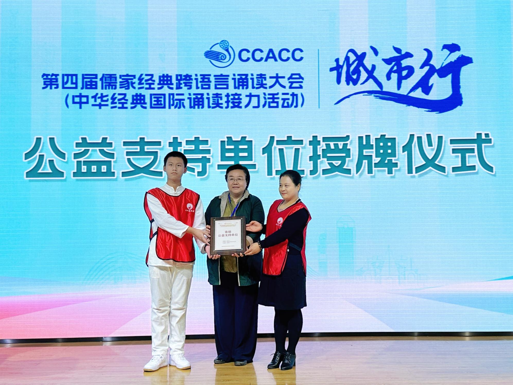 10月13日至14日,第十一届全国儒学社团联席会议暨“孔子教育思想与文化强国时代意义”学术研讨会在黑龙江哈尔滨举行。会上,第四届儒家经典跨语言诵读大会城市行·走进黑龙江正式启动,尼山世界儒学中心(中国孔子基金会秘书处)党委委员、副秘书长周静向黑龙江孔子研究会颁发大会公益支持单位证书。
