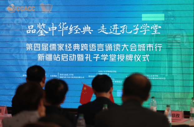 儒风泱泱耀天山,文化润疆启新篇。10月19日,第四届儒家经典跨语言诵读大会城市行·走进新疆暨孔子学堂授牌仪式在乌鲁木齐举行。来自天山区委宣传部、新疆大学、新疆诗词学会、新疆楹联家学会、兵团诗词楹联家学会、新疆红色文化旅游产业促进会、石河子大学外国语学院、乌鲁木齐聆音语言艺术学校等众多机构的领导嘉宾和志愿者,共80余人参加活动。