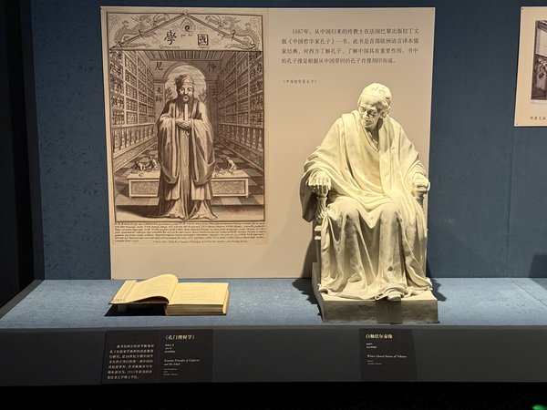 儒家文化还越岭渡洋,传至欧洲。1687年,《中国哲学家孔子》一书在法国巴黎出版。此书是首部欧洲语言译本儒家经典,由来华传教士翻译,对西方了解孔子、了解中国文化具有重要作用。被称为“启蒙运动泰斗”的伟大哲学家伏尔泰深入研究儒学,他推崇“仁义礼智信”的做人准则,赞赏“己所不欲,勿施于人”等理念。孔子思想对伏尔泰思想的形成有着重要影响,儒家文化也为西方启蒙运动提供了智慧和力量。这些在展览中都有相关展示和介绍。