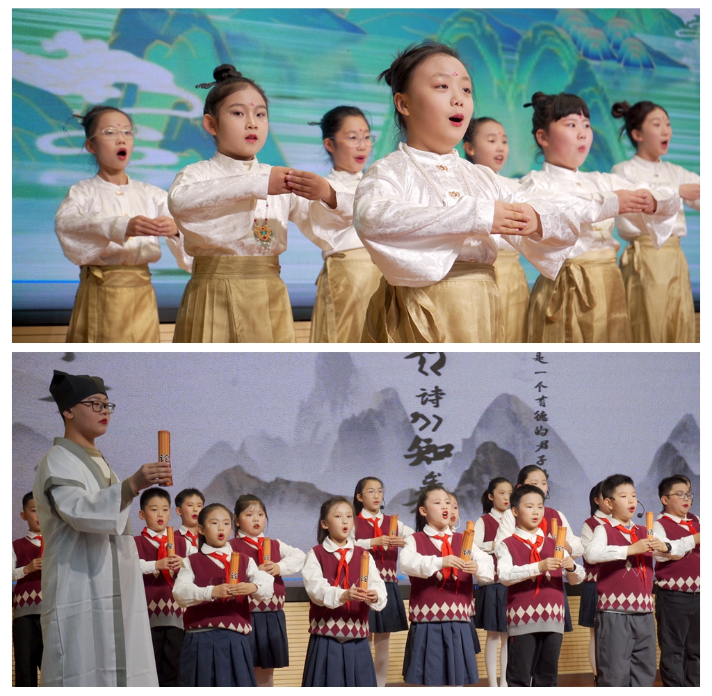 活动现场,枣庄市实验学校的学生们用多语言诵读《诗经·鹿鸣》和《论语》(节选),通过丰富多元的艺术表现形式,对经典进行了创新演绎,将儒家深厚的文化底蕴融入现代舞台表演。学生们饱满的热情和出众的才华,为传统文化赋予了崭新的生命力。