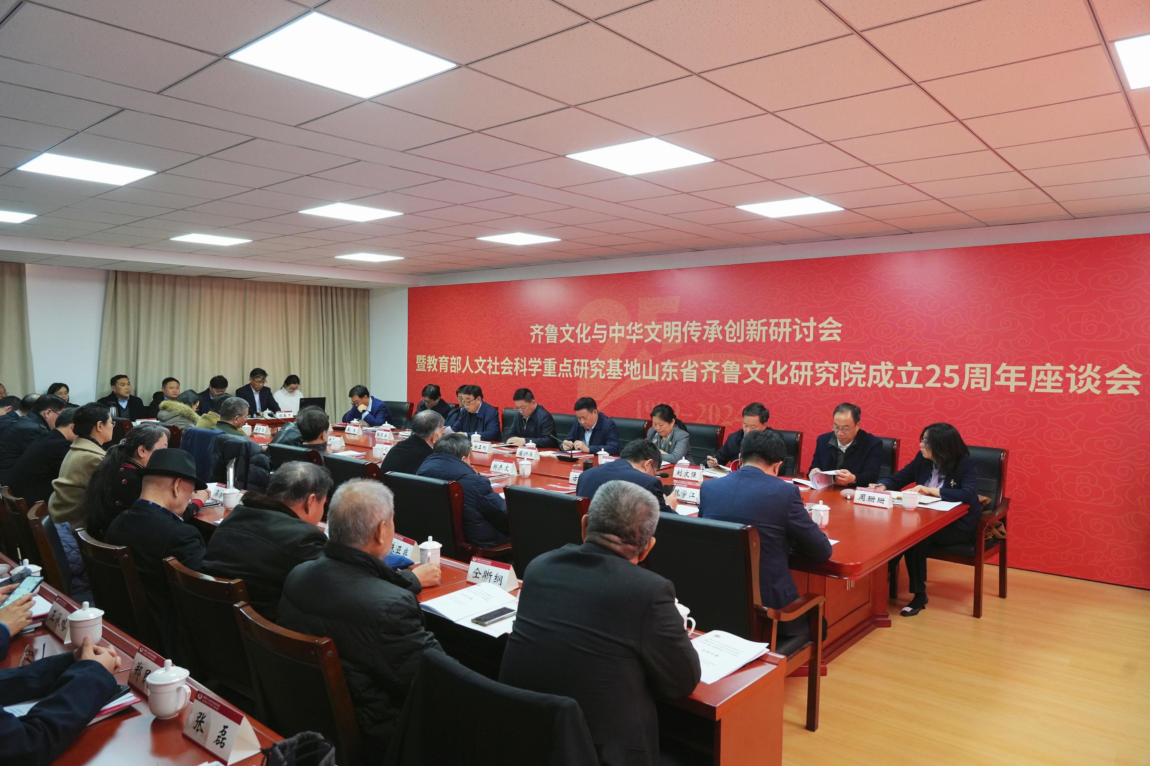 12月17日,齐鲁文化与中华文明传承创新研讨会暨教育部人文社会科学重点研究基地山东省齐鲁文化研究院成立25周年座谈会在山东师范大学千佛山校区举行。山东省委常委、宣传部部长、尼山世界儒学中心主任白玉刚出席并讲话。省政协党组成员、省社科联主席唐洲雁,省政协原副主席、山东师范大学特聘资深教授、齐鲁文化研究院名誉院长王志民出席并讲话。