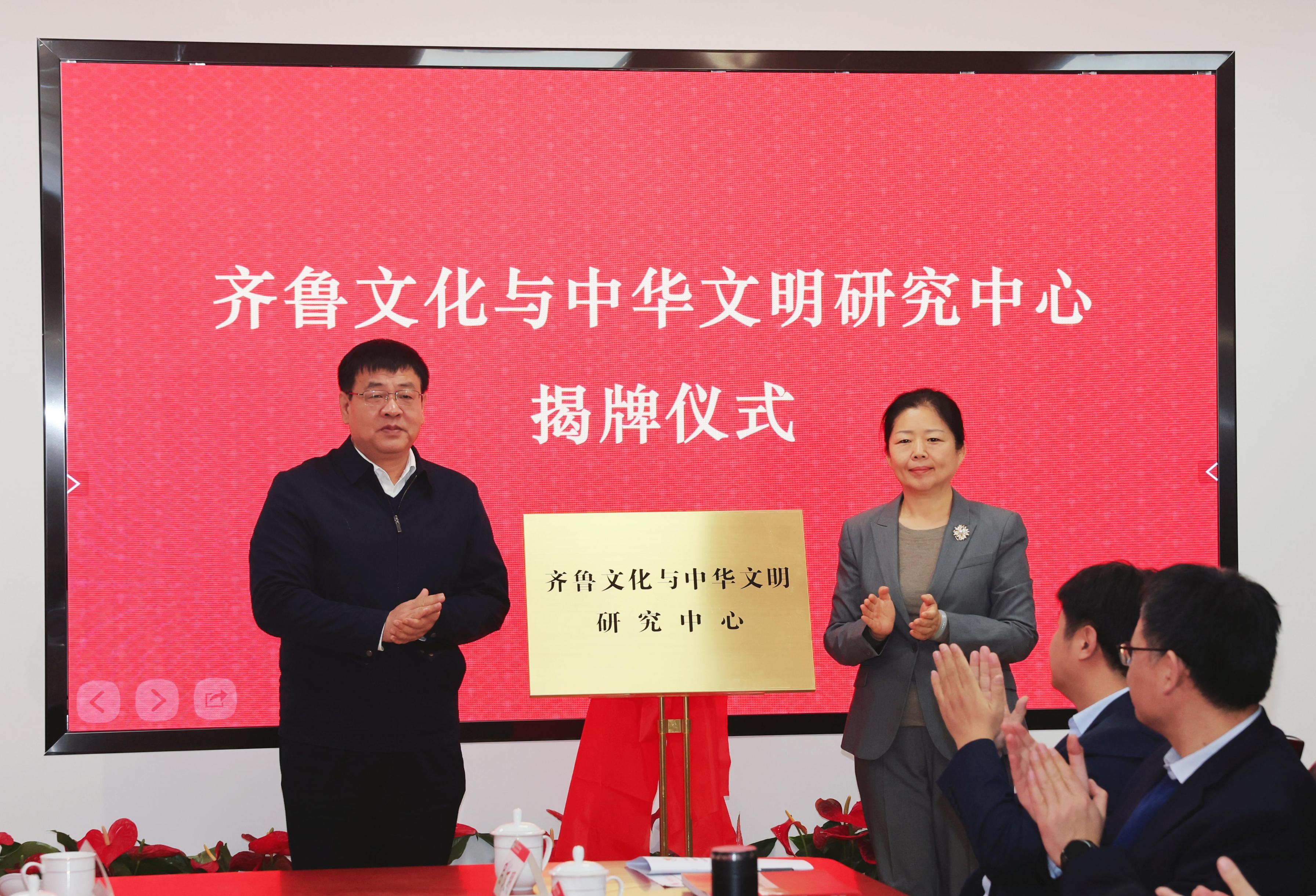 尼山世界儒学中心(中国孔子基金会秘书处)党委书记、副主任、中国孔子基金会副理事长、秘书长国承彦,省委宣传部副部长张同海出席并共同为齐鲁文化与中华文明研究中心揭牌。