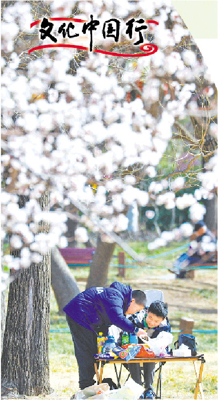 3月16日,游客在济南千佛山赏花游玩。(□新华社发)