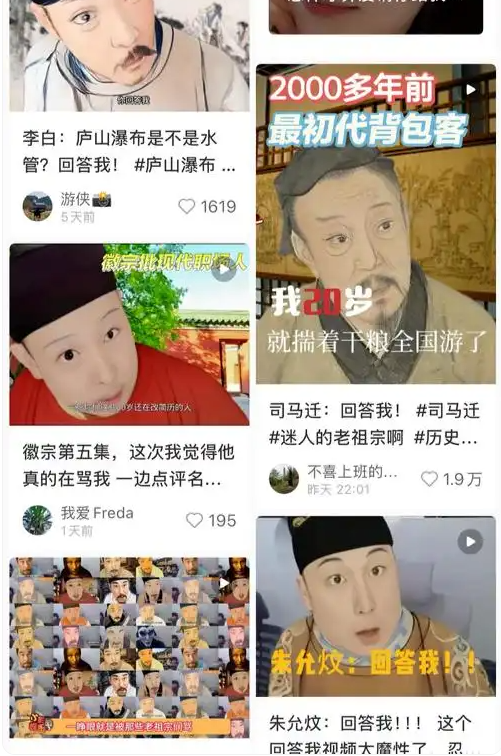 在AI的帮助下,古人们纷纷“复活”,各行各业的“老祖宗”,叉着腰对网友“贴脸开大”:杜甫“解答”了“为何天天写惨诗”的疑问;王羲之“解释”了“为什么不写大字”的问题;宋徽宗也“回应”了“文人当不了皇帝”的指责。这些AI古人以诙谐风趣的口吻,结合人物自身经历和历史事实,再穿插“那我问你”“回答我”等“灵魂拷问”,让人忍俊不禁。