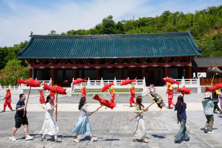 专项研究生们还深度体验了丰富多彩的文化实践活动。在朱子后人的悉心指导下,亲手参与非遗岩茶制作的全过程,从摇青、揉捻到炭焙,每一个环节都让学子们切身感受到“大红袍”独特的岩骨花香。走进朱熹生活五十载的五夫古镇,学子们观赏了传承千年的非遗龙鱼戏表演,鲤鱼跃龙门的灵动演绎再现了辛弃疾笔下“一夜鱼龙舞”的壮美意境。这一融合古闽越图腾与理学教化思想的民俗表演,通过龙鲤斗乌龙的精彩剧情,生动展现了朱子文化对民间艺术的深远影响。在全新升级的5D水舞台剧场,研究生们沉浸式体验了《月映武夷》诗剧演出,水幕中摩崖石刻幻化星雨,建盏茶汤倒映九曲清波,以震撼的视听效果呈现了理学宗师与武夷山水跨越时空的灵魂对话。