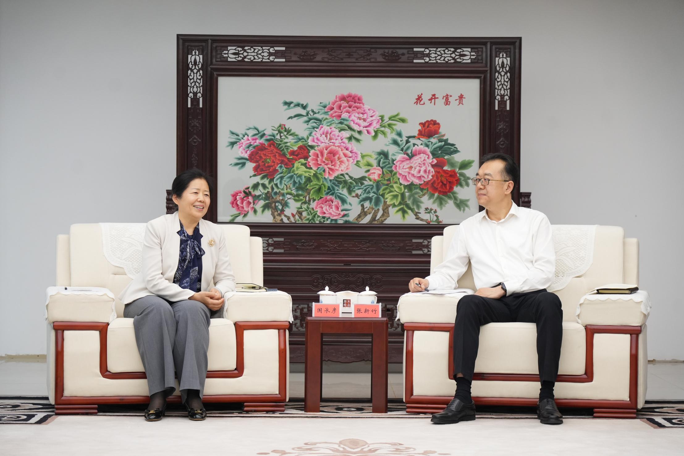 5月29日,尼山世界儒学中心(中国孔子基金会秘书处)党委书记、副主任,中国孔子基金会副理事长、秘书长国承彦一行到中国—上海合作组织地方经贸合作示范区考察调研,并与青岛市委常委、上合示范区党工委书记、胶州市委书记张新竹座谈交流。