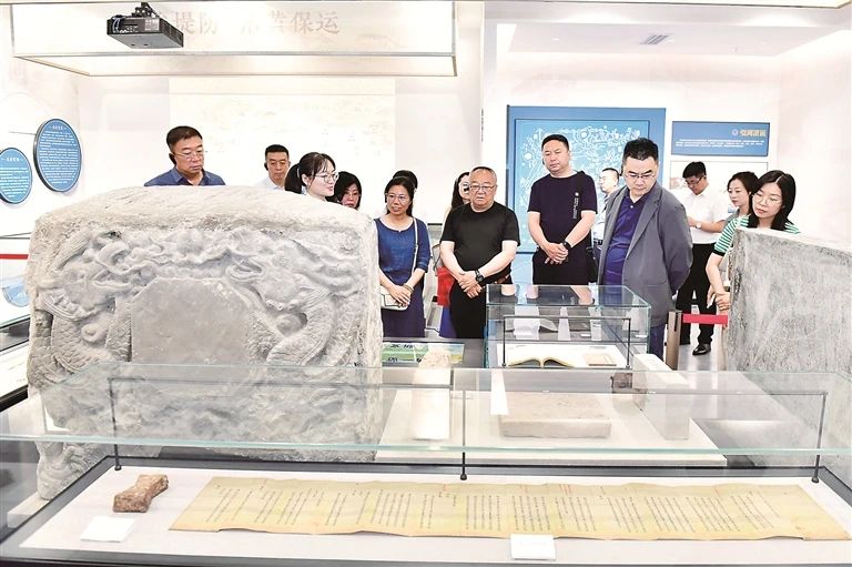 作为沟通中国统一多民族国家浩瀚版图的水路命脉,中国大运河已成为中国的“活态文化遗产长廊”。如今,其申遗成功已经进入新的十年,运河两岸各地继续在保护、传承、利用上下功夫,让古老大运河焕发时代新风貌。图为近日,人们在元明清司运治运最高管理机构——位于山东济宁的河道总督署遗址公园展馆参观,了解感悟古人的智慧与担当。 新华社记者 郭绪雷 摄