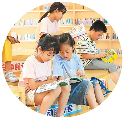 浙江金华婺城区白龙桥镇金奥社区,小朋友们在职工书屋看书。潘秋亚摄(人民视觉)