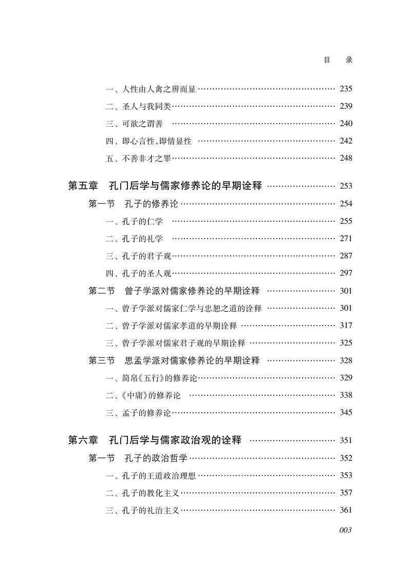 对于本书,我无意说它反映了立林兄先秦儒学研究的一大转变,但据实而论,确实有点像郭店楚简《太一生水》篇所说的“太一生水,水反辅太一”,标志着他在对孔门后学做了一番长程考察后,终于又“反辅”到对儒家精神特质的探求上来。全书大致内容有三,一是分析孔门师弟间的“教学活动”本身,二是探讨颜回、曾子等孔门高足如何用生命与人格践行夫子之学,三是梳理孔门后学对孔子的天道天命观、人性论、修养论和政治观的继承与发展。较之先前两书,本书的一大特色“由史入哲”,对义理的探讨超过了史学的考辨。据我的粗浅印象,很多专治先秦儒学的学者,对宋明儒者的见解很不重视,对现代新儒家的很多论述,尤其不以为然。立林兄这部书,却能兼容并包,充分吸收了历代学者,包括宋明儒者、现代新儒家,以及当今学界的大量成果。我很同意他在书中昭示的一大观念:“孔子学问的核心是关于生命意义的学说,是一种意义的信仰,而孔子的一生恰恰是其生命意义学说、意义信仰的践履过程。在他七十三年的漫长一生中,生命已经化作了学问,而学问也已经化作生命。”事实表明,立林兄不仅在做儒学的“正本清源”工作,更将儒家传统视为一个不断在诠释中永葆青春的“生命的学问”。
