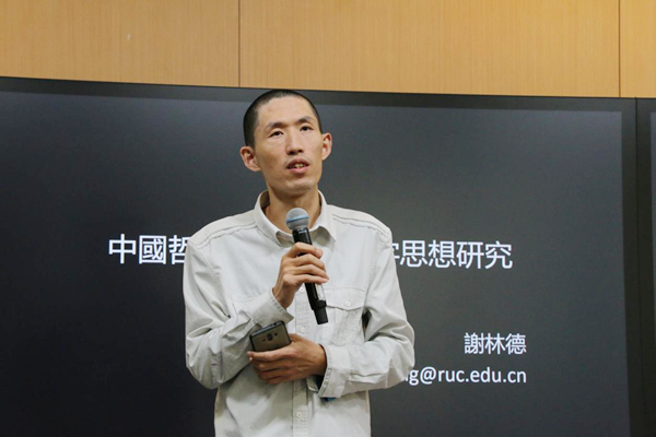 讲座开始,谢林德首先分析了《庄子·天下篇》,由“圣有所生,王有所成,皆原于一。”引出了道与“一”的关系,指出此处之“道”即“一”,“一”有同一义与大全义;而在其后言“天人”、“神人”以及“至人”,呈现出“一”的同一性受到破坏,但仍希望处于“一”的状态之中;接下来,指出“其数散于天下而设于中国者,百家之学时或称而道之。”在此“道”/“一”分裂为百家之学。谢老师指出《庄子·天下篇》中,呈现出道的不断分裂以及数的不断退步的过程。