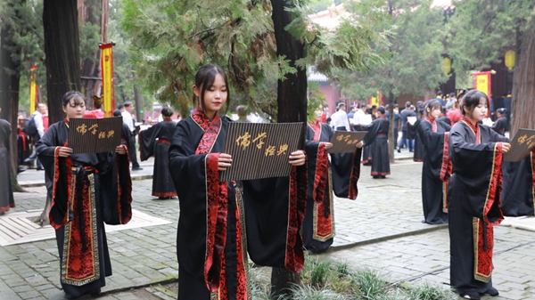 绵延2000多年的祭孔活动是中国历史上独特的文化现象,蕴含着重要的文化信息和时代价值。整个祭祀大典分为开城仪式、开庙仪式、启户仪式、公祭大典四项议程,按照“乐、颂、舞”三个篇章,既保留了古代释奠礼的部分内容,又融入当下精神的创新部分。百名学子首次参加祭孔大典,在心灵上给予了极大震撼,感受到了千年儒风浸染下的礼乐文明,增强了赓续中华文脉的使命感和认同感。