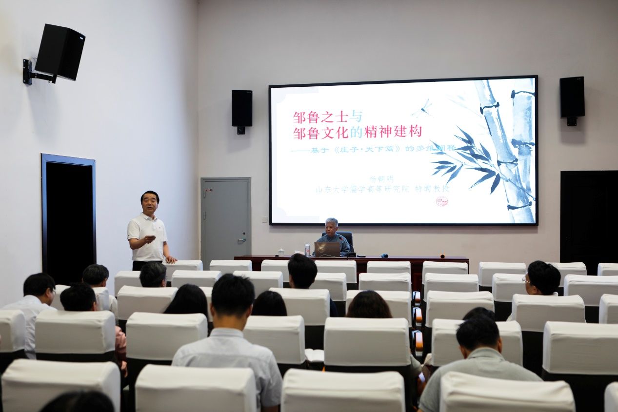 6月3日,孟子研究院举办邹鲁文化专题学术讲座。山东大学儒学高等研究院特聘教授、博士生导师杨朝明主讲《“邹鲁之士”与邹鲁文化的精神建构—— 基于〈庄子・天下篇〉的多维阐释》。孟子研究院党委委员、副院长赵龙主持讲座,中共邹城市委党校、邹城市干部政德教育中心有关同志及孟子研究院全体工作人员共50余人聆听讲座。