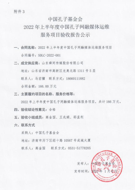 中国孔子基金会2022年上半年度中国孔子网融媒体运维服务项目验收报告公示