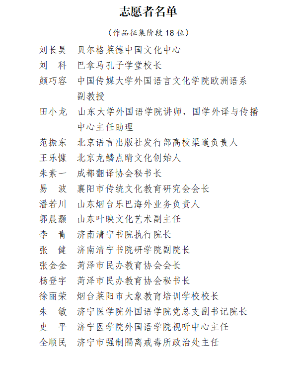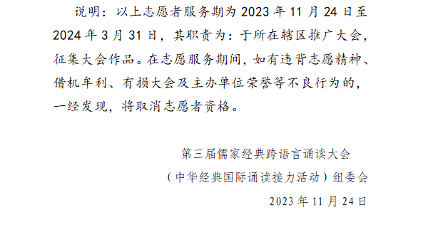 公示|第三届儒家经典跨语言诵读大会(中华经典国际诵读接力活动)志愿者(首批)