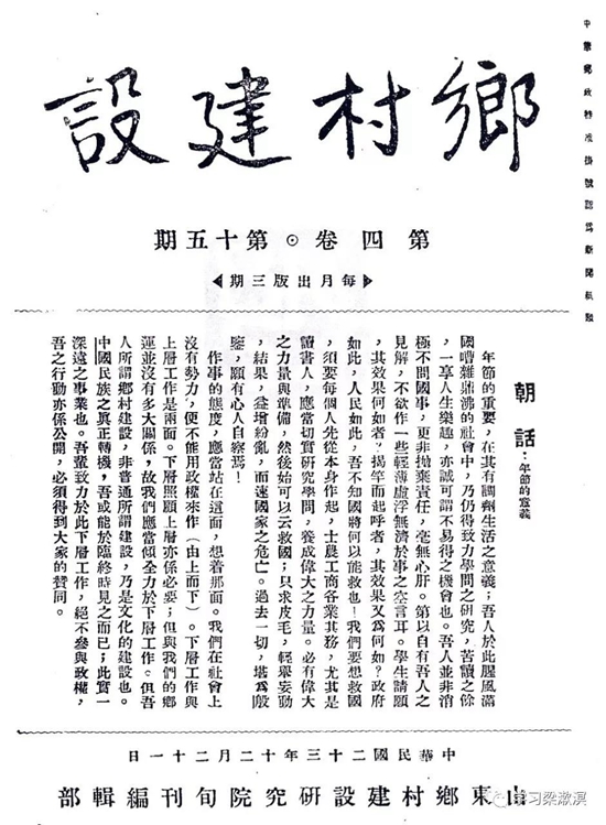 乡村建设,第四卷,第十五期,每月出版三期,中华民国二十三年十二月二十一日,山东乡村建设研究院旬刊编辑部