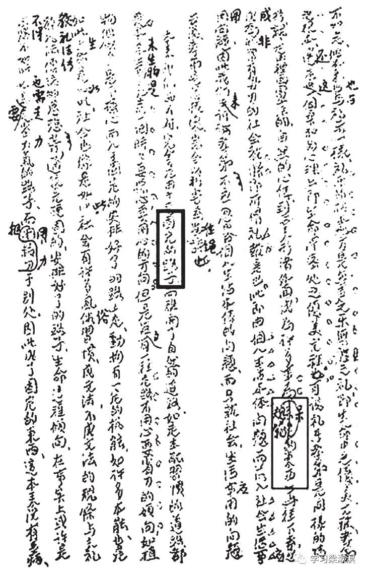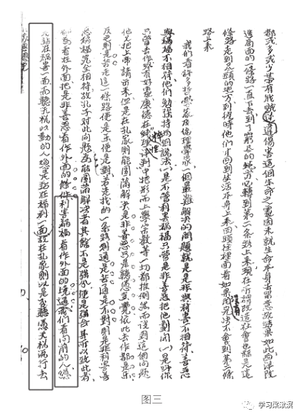 早先读李阎版时,我并不知道此处括号里有这几句话(30 个字!);而今看来,这些被遗漏的文字无疑是极有助于读者加深理解其要旨的。待见到油印本原文后,我方才觉察到被遗漏的内容实在是“不可或缺”的。可叹的是这类严重遗漏,在李阎版中屡见不鲜。